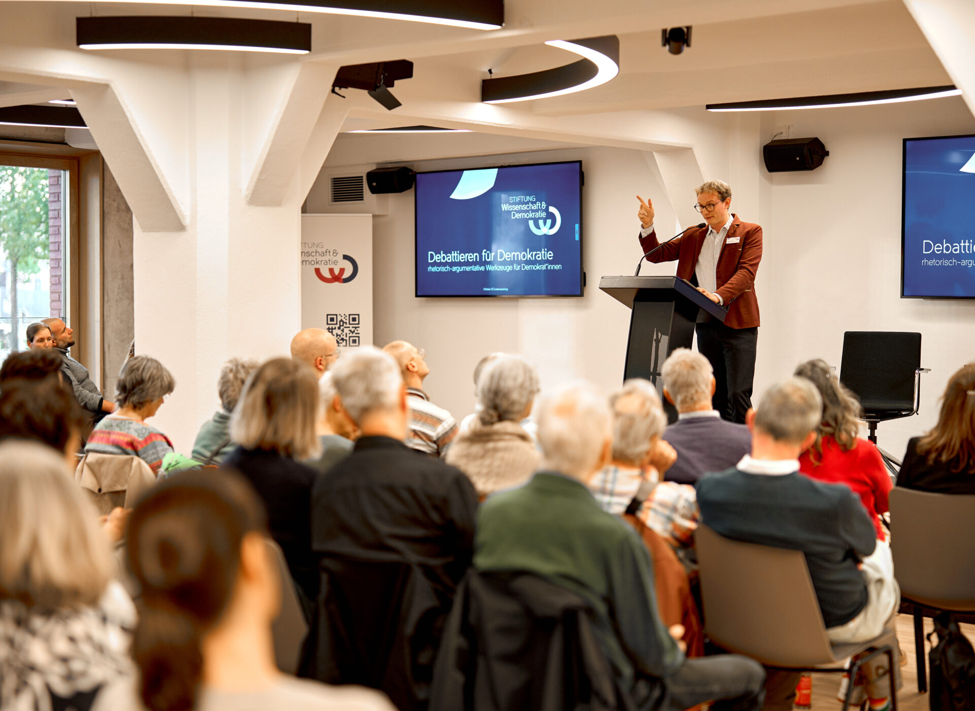 Die Lange Nacht der Demokratie und die DebattierBar der Stiftung Wissenschaft und Demokratie machten deutlich, dass Debattenkultur kein Selbstzweck, sondern ein Grundpfeiler unserer offenen Gesellschaft ist. Wer gut debattiert, stärkt nicht nur die eigene Argumentationskraft, sondern auch das Fundament, auf dem demokratische Verständigung ruht.
