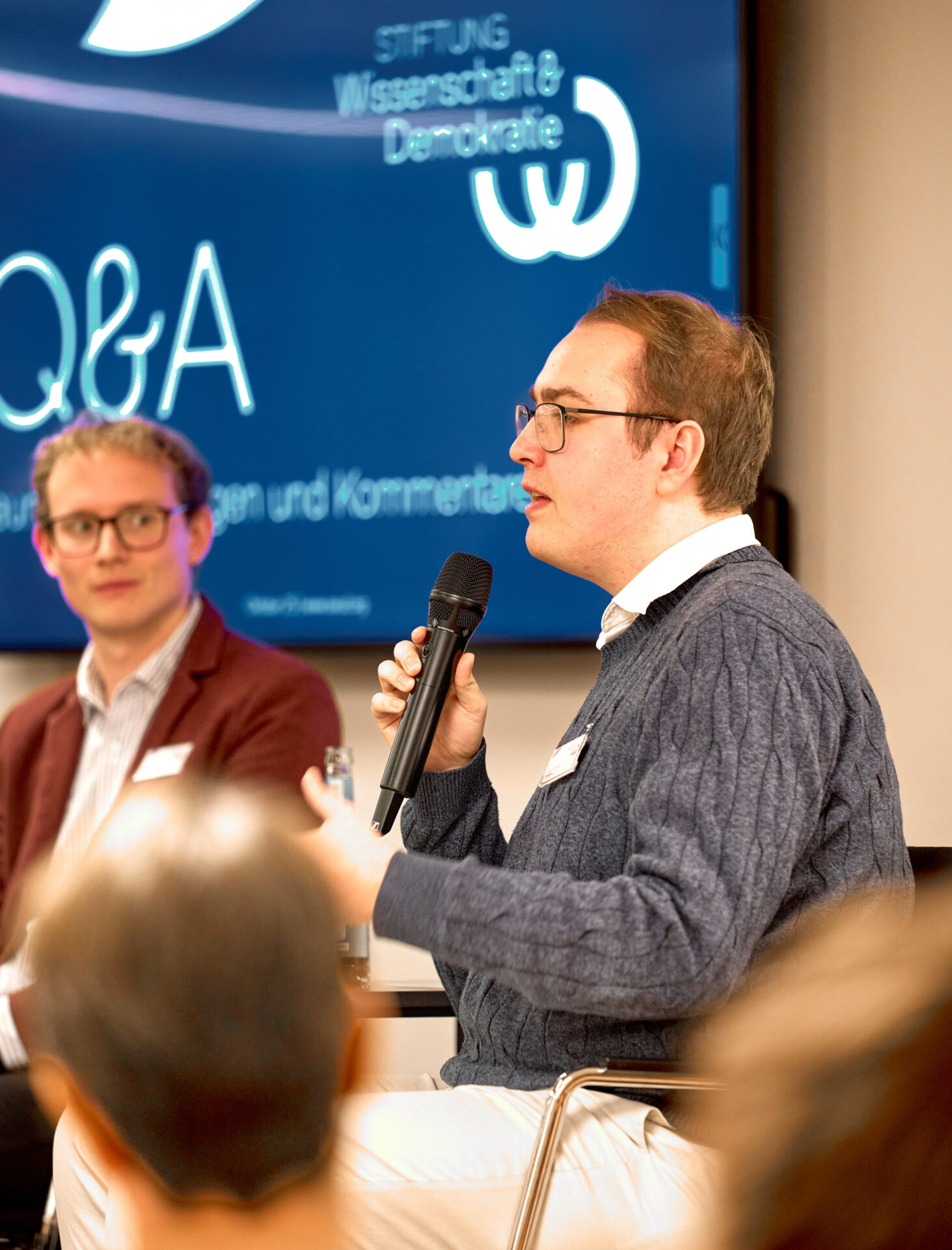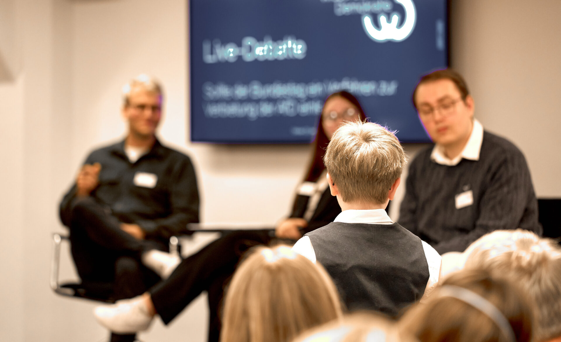 Der hohe Gesprächsbedarf wurde im Anschluss an die Debatte in einem Q&A aufgegriffen. Anregend wurden Fragen zu Argumentationstechniken, zur Rolle von Debatten im demokratischen Miteinander und zu den Grenzen der Meinungsfreiheit diskutiert. Die Teilnehmenden nutzten die Gelegenheit, um nicht nur zuzuhören, sondern selbst aktiv in den demokratischen Dialog einzutreten.