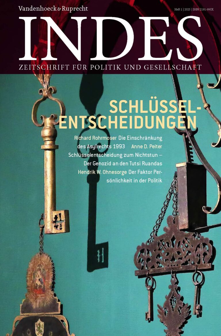 Ausgabe 1/2025 zum Titel „Schlüsselentscheidungen“ widmet sich politischen Weichenstellungen, die Geschichte geschrieben haben – von Trumps Rückkehr ins Weiße Haus und dem Ende der Ampel-Koalition bis hin zu historischen Entscheidungen wie der Gründung des Umweltministeriums, der Agenda 2010 oder der Schuldenbremse. Das Heft fragt, was Entscheidungen zu Schlüsselentscheidungen macht und wann auch Nicht-Entscheidungen Geschichte schreiben.